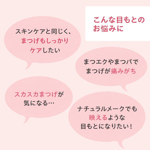 まつ毛にとって負担となるダメージの蓄積が、まつ毛を“下向き”印象にしています。