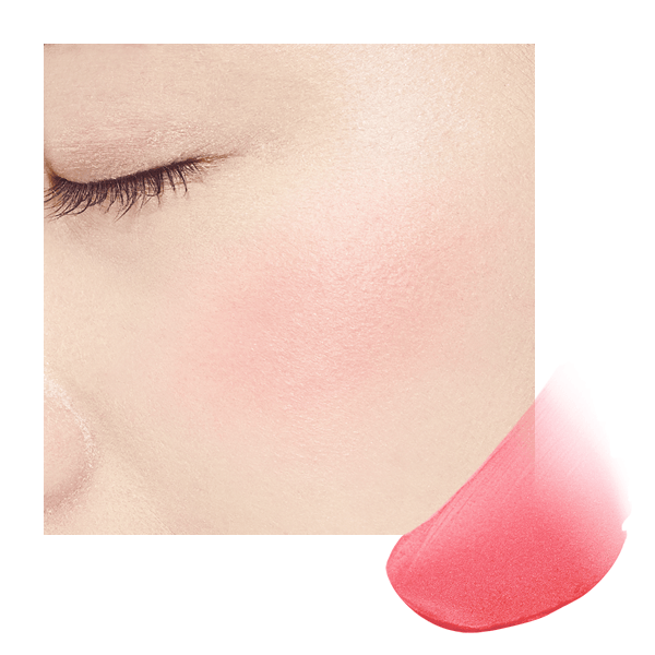 さらに、肌補整力※1と美容液設計により、毛穴・色ムラ・凹凸を効果的にカバーしながら、メーク中も肌をケア! 明るく透明感※2のある肌に整えて、フレッシュで若々しい印象の頬へと導きます。