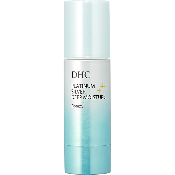 『DHCプラチナシルバー ディープモイスチュアクリーム』は、プラチナシルバーシリーズの高保湿※1ラインのクリームです。ナノサイズのプラチナ*とシルバー*に加えて、2つのハリサポート成分である海藻エキス※2、セラミドポリマー※3を配合。こっくりとしたテクスチャーでありながら、ベタつくことなく肌になじみ、はね返すようなハリ・弾力肌へ導きます。