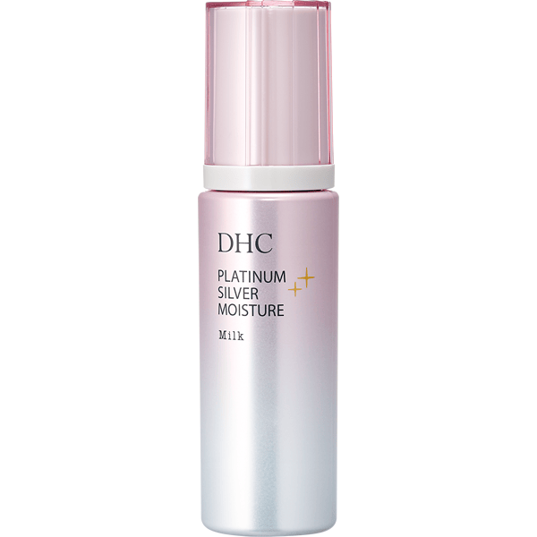 『DHCプラチナシルバー モイスチュアミルク』は、プラチナシルバーシリーズの浸透力※1と透明感※2を追求した、さっぱりしたテクスチャーの乳液です。みずみずしく輝く肌に整えるプラチナ*とシルバー*をナノサイズで配合し、角層をうるおいで満たして保湿します。さらにサトザクラ花エキスやウメ果実エキスといった植物由来の美容保湿成分をプラス。さらりとなじみのよい乳液が、ふっくらとハリのある明るい肌印象※2に導きます。
