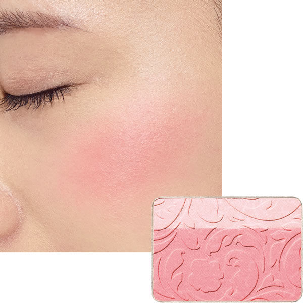 チークカラーのパレットに配した2色は、くすみ・色ムラを自然にカバーするくすみクリアパール配合の彩りチークカラーと、肌を明るく演出するブライトチェンジパウダー配合の美肌3Dパウダー。この2種をブレンドすることで、濃淡を調整でき、大人の肌にイキイキとした印象とリフトアップ感を思いのままにプラスできます。