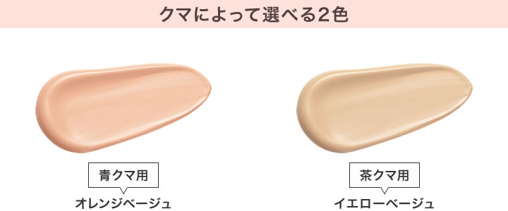 青クマ用は、補色の関係からヒントを得て、「青」を打ち消す「赤」に注目。赤みのあるベージュ(オレンジベージュ)が青クマをカバーします。茶クマ用には、くすみをトーンアップする黄みのあるベージュ(イエローベージュ)を開発しました。