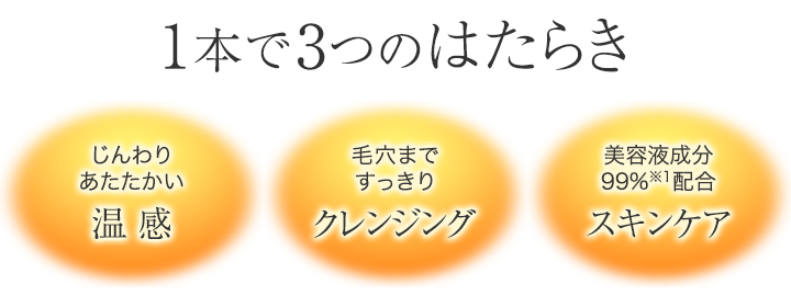 顔がじんわり暖かくなっていく感じと、ダブル洗顔の必要がないのが気に入っています。