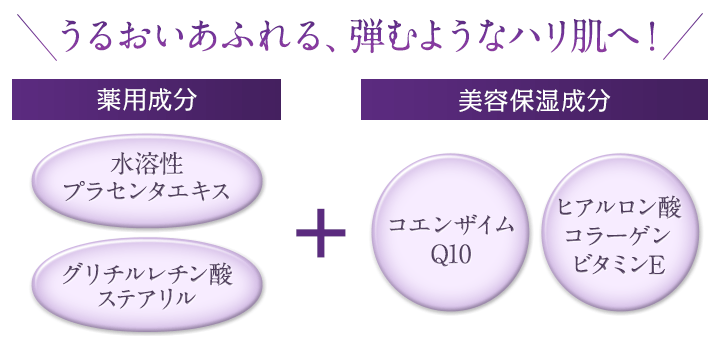薬用成分※2に、10倍濃度※3のコエンザイムQ10※4、ヒアルロン酸※4、コラーゲン※4といった美肌サポート成分など、薬用Qシリーズ共通の成分を配合。若々しいハリとうるおいに満ちたキメ美肌を保ちます。