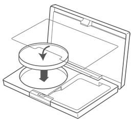 <リフィル>の中皿をコンパクトにはめ込み、上から軽く押さえてください。