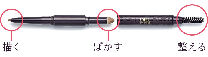 眉毛をケアするティアレ花エキス※1、バージンオリーブオイル※2、パンテノール※2といった3種の美容液成分を配合しました。さらにペンシルは、DHC史上最高のなめらかな描き心地で、眉毛にも肌にもやさしくストレスフリーなメークを実現しました。