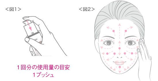 - 化粧下地で肌を整えた後、1回分を手の甲などにとります<図1>。
