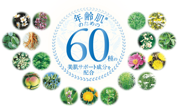 選び抜いた60種もの美肌サポート成分が角層まで浸透。コラーゲンやホホバオイル(ホホバエステル)といった保湿成分が肌にうるおいを与え、みずみずしい弾力肌へ。さらに、ビタミンやアミノ酸、和漢洋植物エキスが、肌のコンディションを整えます。