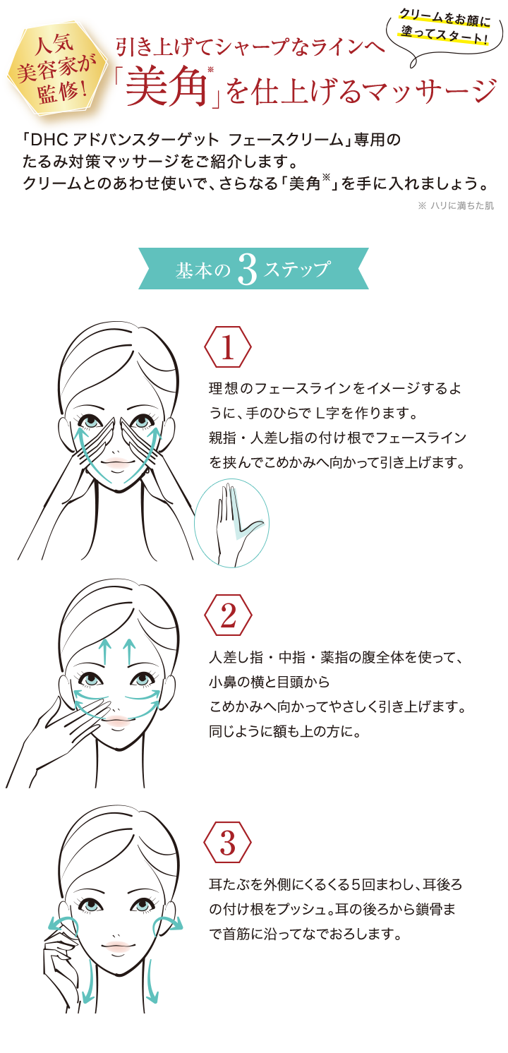 『DHCアドバンスターゲット フェースクリーム』は、シャープに美しく年齢を重ねたい女性たちの肌を整えるクリームです。ハリをもたらす2つのプロセスにアプローチするDHC独自知見成分「バウンスキーコンプレックス※1」を配合。凛としたハリ・弾力のある肌へ導きます。