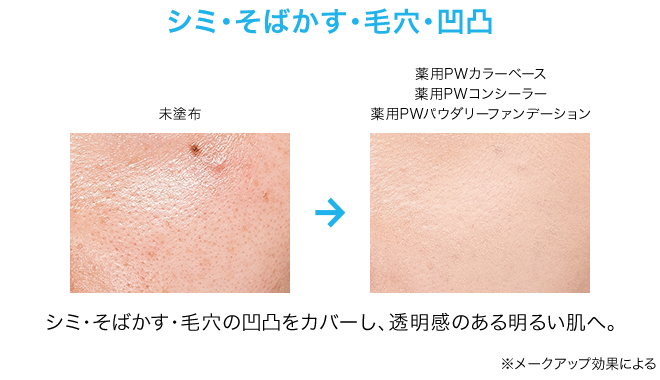 シミ・そばかす・くすみ・毛穴をカバーする、美白メークアップ効果