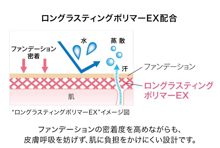 また、“ロングラスティングポリマー”を当社従来品より増量することにより、ファンデーションの肌への密着度、持続性がさらに高まりました。