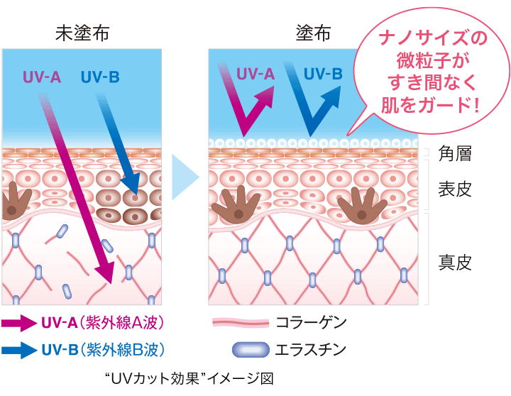 ナノサイズの微粒子が肌を守る、高いUVカット効果