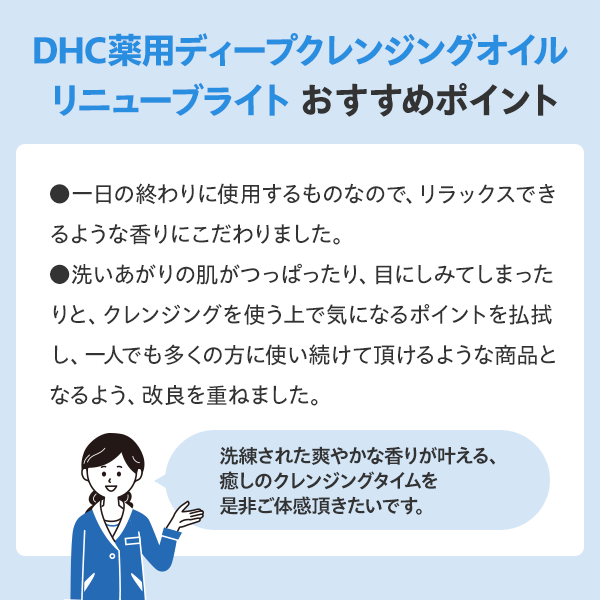 DHC薬用ディープクレンジングオイル』と同様に、スペイン産有機栽培のオリーブ果実からとれる「フロール・デ・アセイテ(バージンオイルの精華はな)」を配合しています。