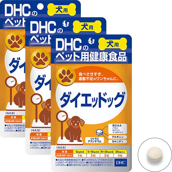 • ※食物アレルギーのある犬には、原材料をご確認、お客様相談室にご相談の上与えてください。まれに体調や体質に合わない場合があります。アレルギー成分に関するご質問はDHCお客様相談室へお問い合わせください。