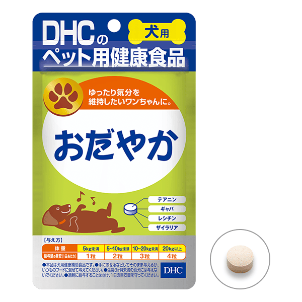 ゆったり落ち着いた気分を保つテアニン、レシチン、ザイラリアを配合した『犬用 国産 おだやか』で、わんちゃんの快適な毎日をサポートしてあげましょう。