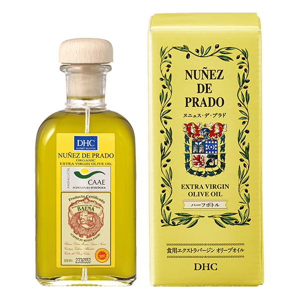 『ヌニェス・デ・プラド エクストラバージンオリーブオイル』は、世界の名だたるオリーブオイル品評会で、数々の受賞歴を誇る最高級オリーブオイルです。まだ青味の残った新鮮な有機栽培のオリーブ果実を手摘みし、2時間以内に砕いて、自然にしたたり落ちるオイルを1滴1滴ていねいに集めた貴重なオイル。最高級の豊潤な香りと風味は、サラダのドレッシングやマリネにもぴったり。そのままパンにつけてもおいしくいただけます。日本ではDHCだけの独占販売です。