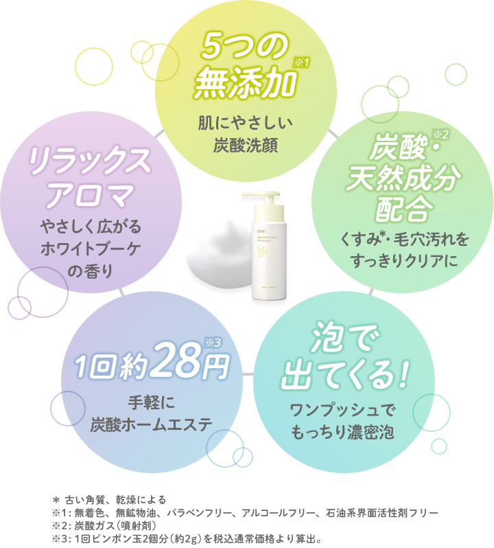 炭酸※1のもっちり濃密泡でマッサージ洗顔! くすみ※2の気にならない明るい素肌へ