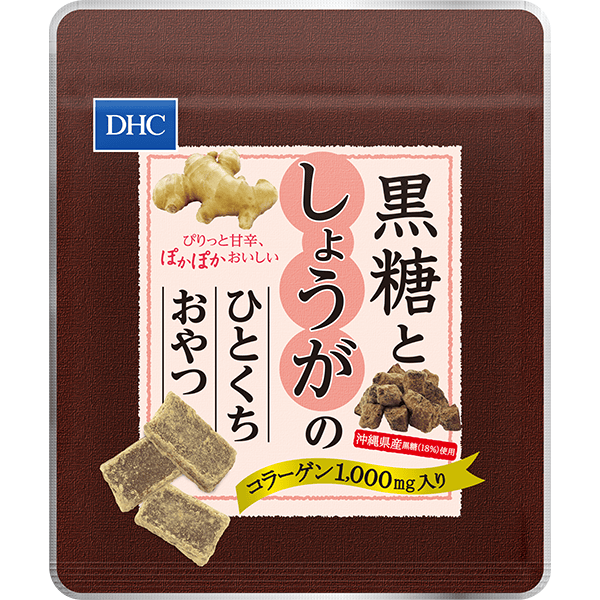 ぽかぽかをサポートする国産しょうが粉末をからめた『DHC黒糖としょうがのひとくちおやつ(コラーゲン入り)』は、ピリッとした甘辛さとすっきりとしたおいしさが特長。さらに、ハリとうるおいを保つコラーゲンを1袋あたり1,000mg配合しました。キレイを目指しながら、黒糖の多彩なミネラルも手軽に摂れる、ヘルシーなおやつです。