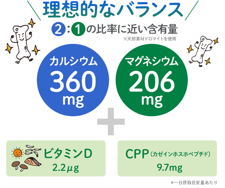 骨や歯の形成に欠かせないミネラルをバランス良く配合