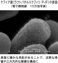 コーカサス地方のケフィア飲料を徹底的に研究し、なかでも活発な4種(ラクトバチルスケフィリP-IFなど)の乳酸菌と3種の酵母を使用。菌の表面が複雑な立体構造をもち、他の菌と自由に接触して、三次元的な分裂による増殖を行うなど、複雑かつ活発なケフィア種菌となっています。『生菌ケフィア』はこのケフィア種菌と、安全に配慮した国産乳を使用して、作られています。