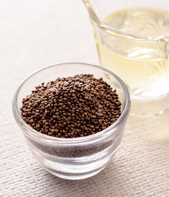 えごま油は、注目の健康成分・α-リノレン酸が豊富に含まれ、健康に気づかう方に今、人気の食材です。しかし、α-リノレン酸は熱に弱く、酸化しやすい性質を持っています。そこで『毎日、とりたい えごま油』では、搾油に高温を使わない、低温圧搾方式を採用しました。加熱調理に使う以外で食事に取り入れようとすると、なかなか難しいえごま油ですが、『毎日、とりたい えごま油』なら、毎日の健康習慣として手軽にお摂りいただけます。
