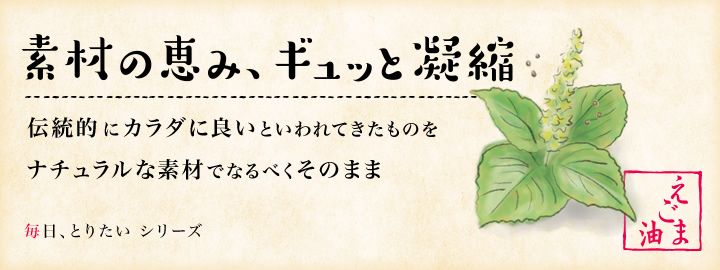 注目の健康食材“えごま油”の恵みを、ぎゅっと凝縮しました!
