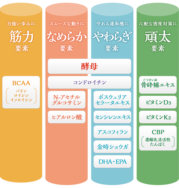“自立した歩み”に必要な3要素に向けた成分が、これひとつで摂れる!