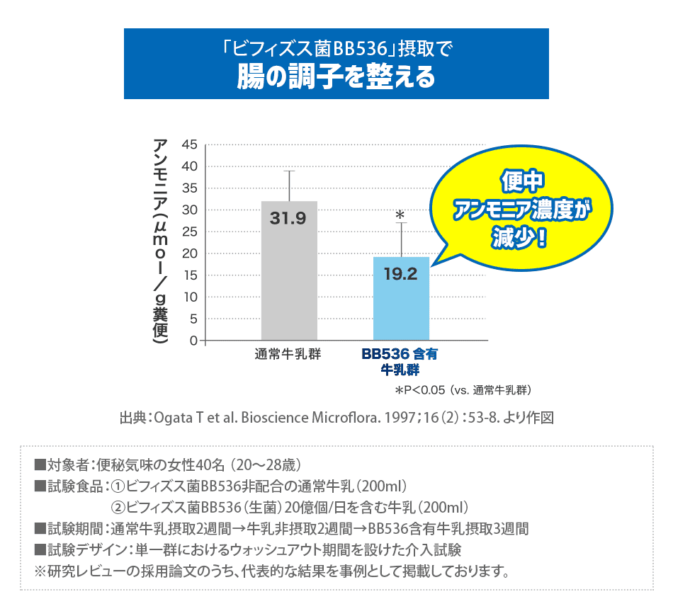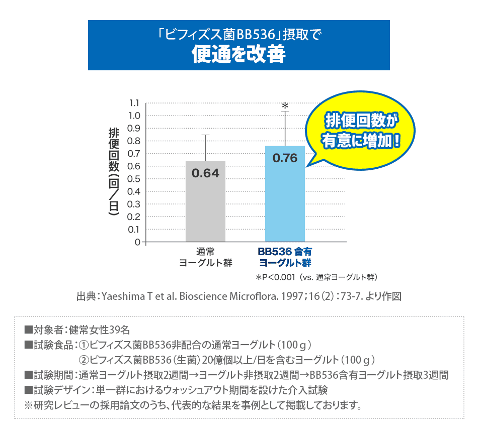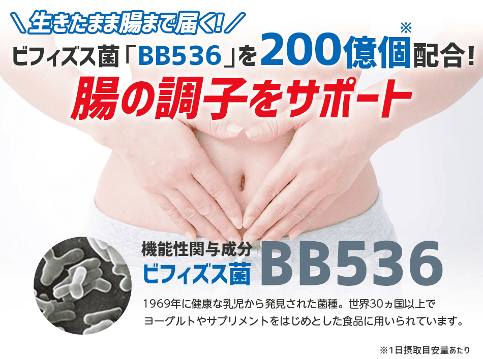 腸内環境・お通じが気になる方に! 生きて届く「ビフィズス菌BB536」が腸の調子をサポート!