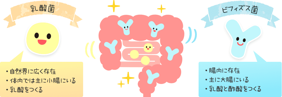 乳酸菌とビフィズス菌はどちらも体によい作用をもつ“善玉菌”の代表的な存在で、すっきりすこやかな毎日の手助けをしてくれています。