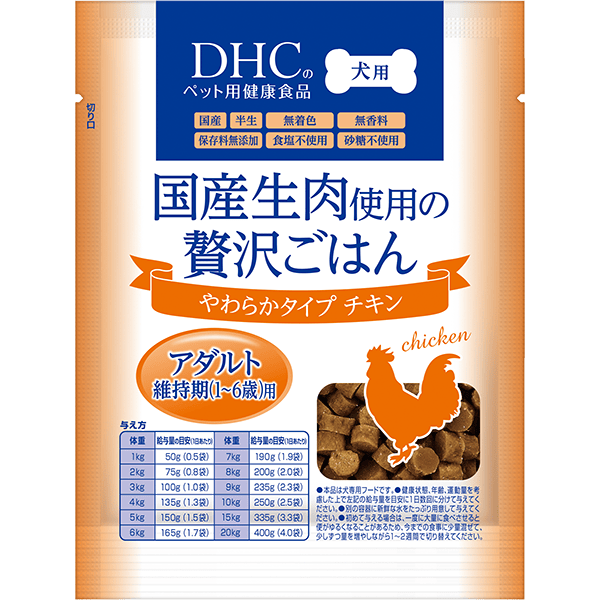- ※食物アレルギーのある犬には、原材料をご確認、健康食品相談室にご相談の上与えてください。まれに体調や体質に合わない場合があります。アレルギー成分に関するご質問はDHCお客様相談室へお問い合わせください。