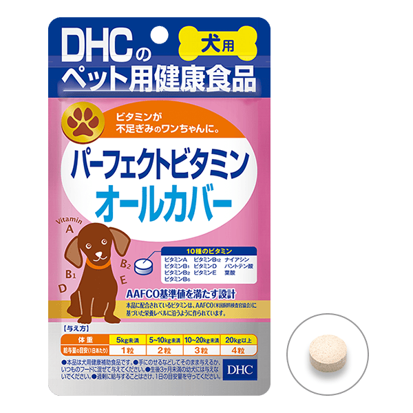 『犬用 国産 パーフェクトビタミン オールカバー』は、このAAFCOが定めるビタミンの基準値を満たすよう配合。ワンちゃんの健康の基本をしっかりサポートします。