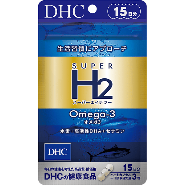 高活性DHA*は、青魚のサラサラ成分として人気のDHA、EPAだけでなく、EPA以上のパワーがあるといわれるDPAもとれる注目の成分。この高活性DHA*を人気の水素サプリ『スーパーエイチツー』に配合したサプリメントが、『スーパーエイチツー オメガ3』です。水素は『スーパーエイチツー』と同量配合し、さらに、サポート成分としてセサミン、ビタミンEもプラスしました。注目成分がまとめて摂れて、生活習慣が気になる方の健康にアプローチします。