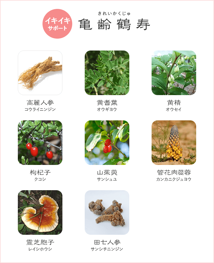 【原材料名】植物醗酵エキス(黒砂糖、りんご、玄米こうじ、その他)(国内製造)、黒砂糖、植物エキス(クコシ、ジョテイシ、シャエンシ、エゾウコギ、松葉、ホコツシ、ケイシ、ケイケットウ、菊花、ケツメイシ、オウセイ、サンシュユ、カンカニクジュヨウ、シャゼンシ、霊芝、田七人参、高麗人参、オウギ葉)、オリゴ糖、(一部に大豆・キウイフルーツ・バナナ・もも・りんごを含む)