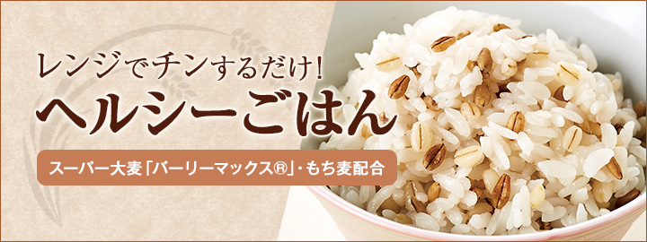 腸の奥まで届く食物繊維が含まれるとされるスーパー大麦「バーリーマックス®」と、モチモチッとした食感でおいしさをアップさせるもち麦を配合。国産うるち米と炊き上げて、無菌パック化しました。レンジでチンするだけで、手間なし! 簡単で、おいしい健康ごはんができあがります。