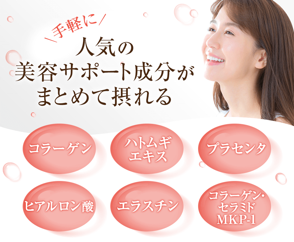 6つの人気美容サポート成分で、毎日のキレイを底上げ!