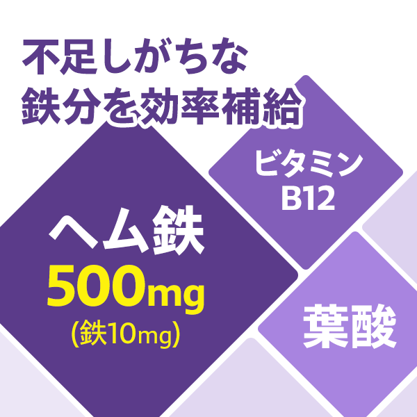 - *鉄はヘム鉄として500mg配合しています。