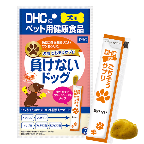 - ※食物アレルギーのある犬には、原材料をご確認、健康食品相談室にご相談の上与えてください。まれに体調や体質に合わない場合があります。アレルギー成分に関するご質問はDHCお客様相談室へお問い合わせください。