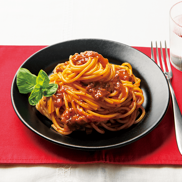 トマトペーストに鶏肉、豚肉、牛肉、香味野菜など4種の野菜を加え、奥行きのある豊かな味わいに仕上げました。ゆでたパスタにかけるだけのレトルトタイプで、おいしく手軽に[難消化性デキストリン(食物繊維)]を摂取できます。お肉と野菜のうまみたっぷりの、本格的な味わいをお楽しみください。