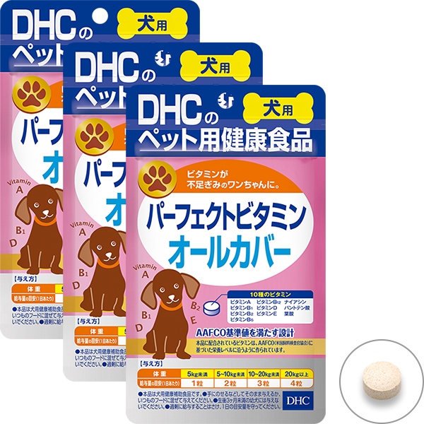 『犬用 国産 パーフェクトビタミン オールカバー』は、このAAFCOが定めるビタミンの基準値を満たすよう配合。ワンちゃんの健康の基本をしっかりサポートします。