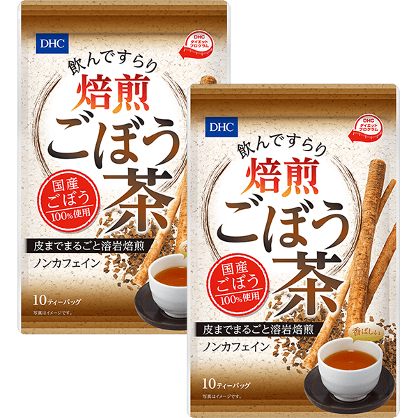 『DHC飲んですらり 焙煎ごぼう茶』は、美健成分たっぷりの国産ごぼうを皮ごとこだわりの方法で焙煎してティーバッグに詰めた、ダイエットにも役立つ美容健康茶です。均一に焙煎できるように5mmのダイスカットにした採れたての新鮮なごぼうを、桜島溶岩石を用いた遠赤外線でじっくり焙煎し、香ばしい中にほのかな甘みを感じる香り豊かな味わいに仕上げました。