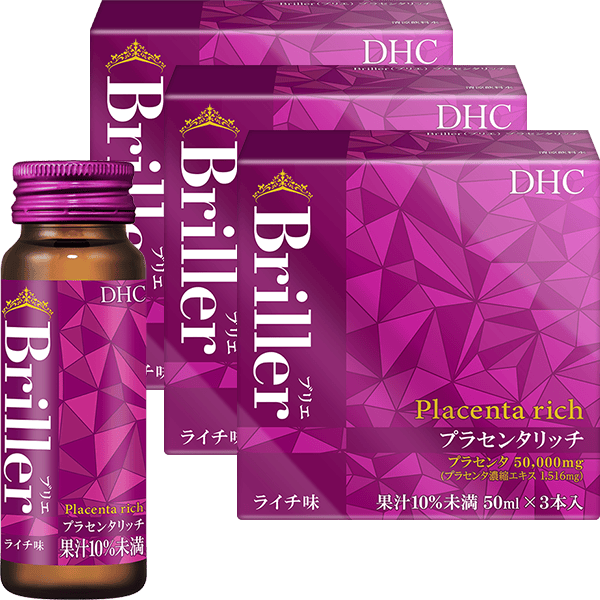 『Briller(ブリエ) プラセンタリッチ』は、透明感のある艶めく美しさに役立つとされるプラセンタを1本に50,000mg(プラセンタ濃縮エキス1,516mg)も高配合※した、リッチな美容ドリンクです。これまでの美容ドリンクに物足りなさを感じていた方、ワンランク上のお手入れで美しさの底上げを目指す方におすすめです。