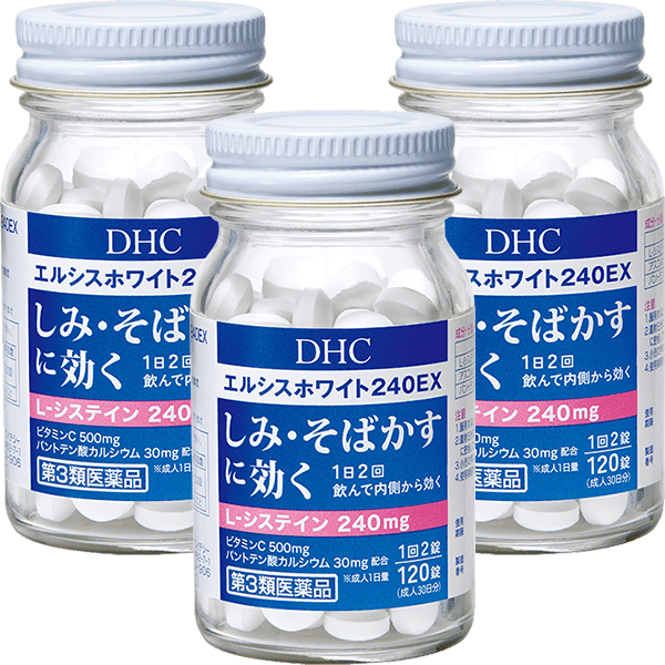 『DHCエルシスホワイト240EX』は、L-システイン製剤として皮膚の代謝に不可欠なL-システインをDHC史上最大量の240mg配合した医薬品です。