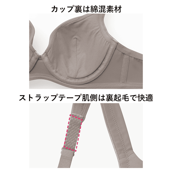 - カップ裏には肌にやさしい綿混素材を使用