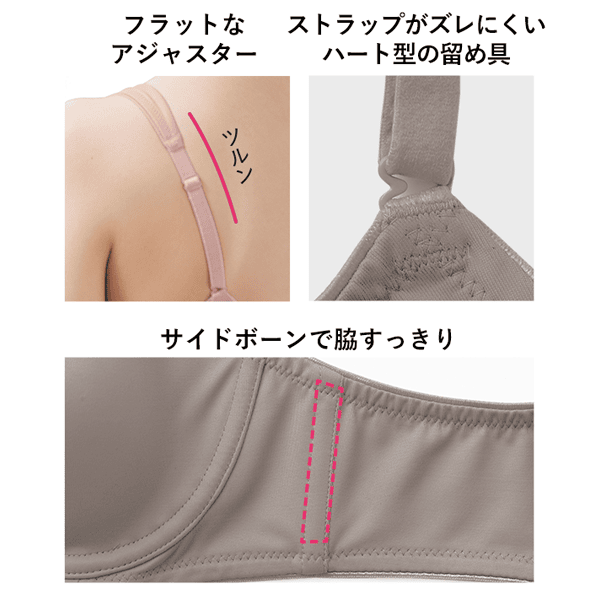 ワイヤーがあたる、きれいな胸の形がキープできない、そんなお悩みを解決する大人気ブラがさらに機能を向上!これまで通りの優れた機能は変えず、体型や時代の変化とともに感じるちょっとしたストレスのみを解消するよう工夫しました! こんなにも長い間変わらず愛されている理由が、着ければ必ずわかるはず。ぜひ実感してみてください!