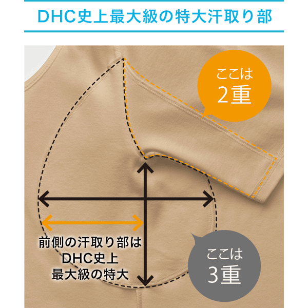 DHC史上最大級の汗取り面積!脇から腕汗まで広~くキャッチ