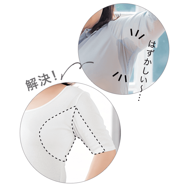 たくさん汗をかく方だと、普通の汗取りパッドじゃ心もとない…。そんな“大”汗っかきさんの声にお応えし、大好評の超大汗取りインナーに腕汗までとれる5分袖登場!