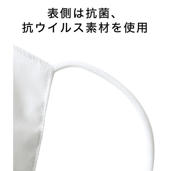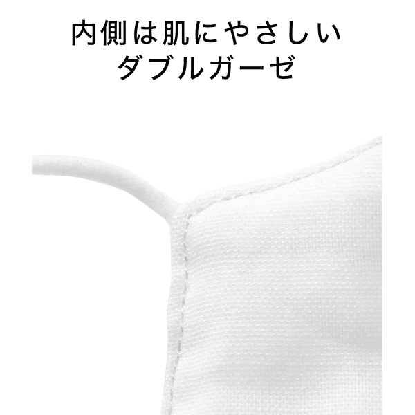 表側は抗菌・抗ウイルス素材を使用しました。内側は肌にやさしいダブルガーゼ素材の洗って繰り返し使えるマスクです。立体設計で口元にしっかりフィットしてくれます。