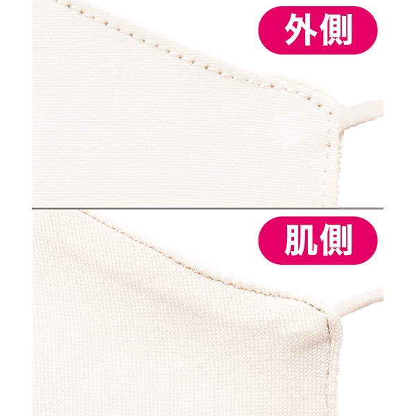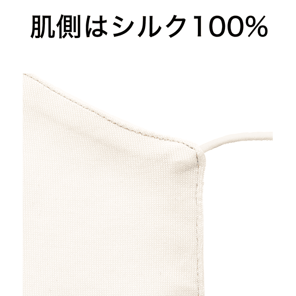 肌側シルク100%・外側綿混素材のやさしいマスクです。なめらかシルクはお肌に近い保湿成分が含まれたソフトで肌なじみのよい素材。吸放湿性に優れており、しっとりと乾燥を防ぎます。