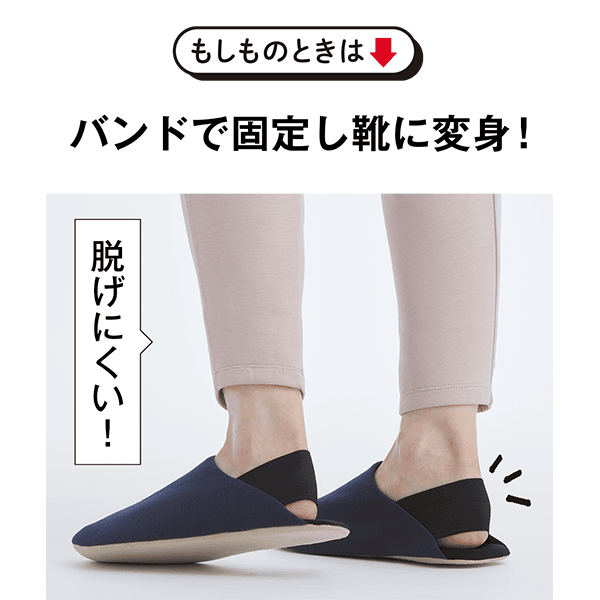 耐踏み抜き性インソールにより、釘やガラス片などの危険物から足を守るスリッパ。ゴム留め付きで脱げにくいから、このまま非難することができます。普段からルームスリッパとして使用し、備えましょう。
