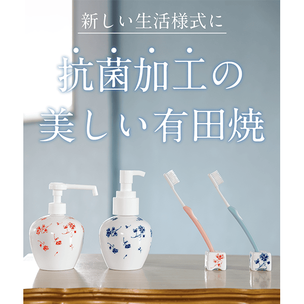 抗菌があたり前の時代になってきましたが、抗菌性が高い酸化チタン&銅の抗菌剤をほどこした有田焼があるのはご存じですか?透明感のある白磁と、色鮮やかな釉薬の美しい発色が特長の有田焼が水まわりを彩ります。やさしい絵柄と形状でどんなインテリアにもなじんでくれます。